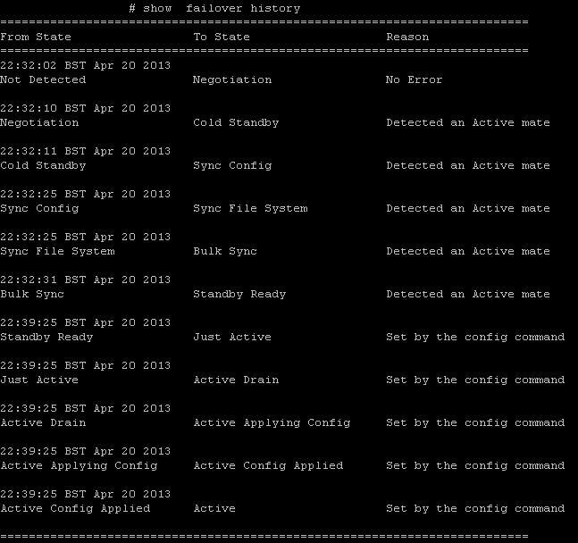 This command show current state of failover. Here you can also see if and when last failure happened.